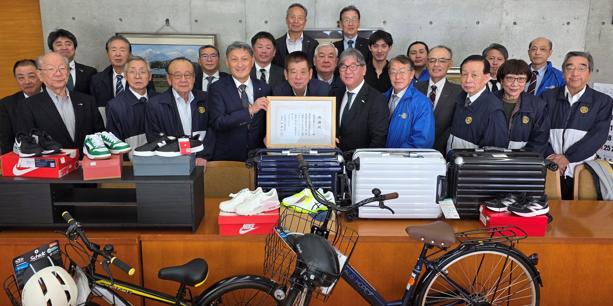 事業報告 2025/11/18 福島愛育園に支援品寄贈 地域の子どもたちを支援しようと11月12日、福島市の福島愛育園に靴や自転車などを寄贈しました。 国際ロータリー第2530地区の地区補助金を活用した事業で、昨年から準備を進めてきました。 靴は児童それぞれの通学や部活などに、自転車は高校生の通学に、キャリーバッグは修学旅行などに活用されるとのことです。 会員一同、子どもたちの健やかな成長を願っています。 一覧へ戻る